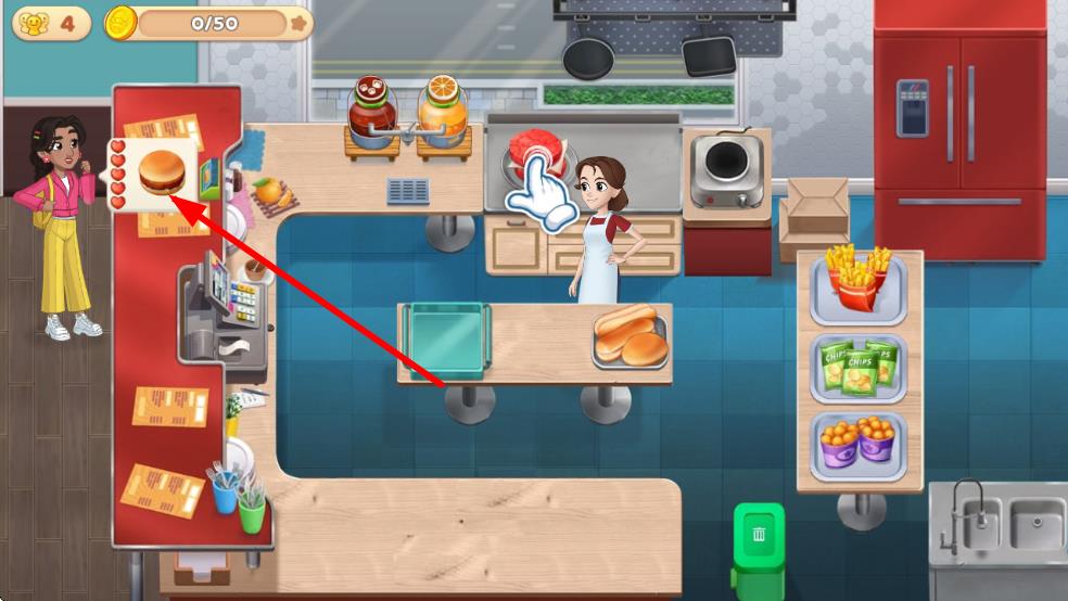 1、點擊“開始游戲”進入餐廳經營界面,查看顧客訂單需求,點擊訂單獲取菜品制作提示。