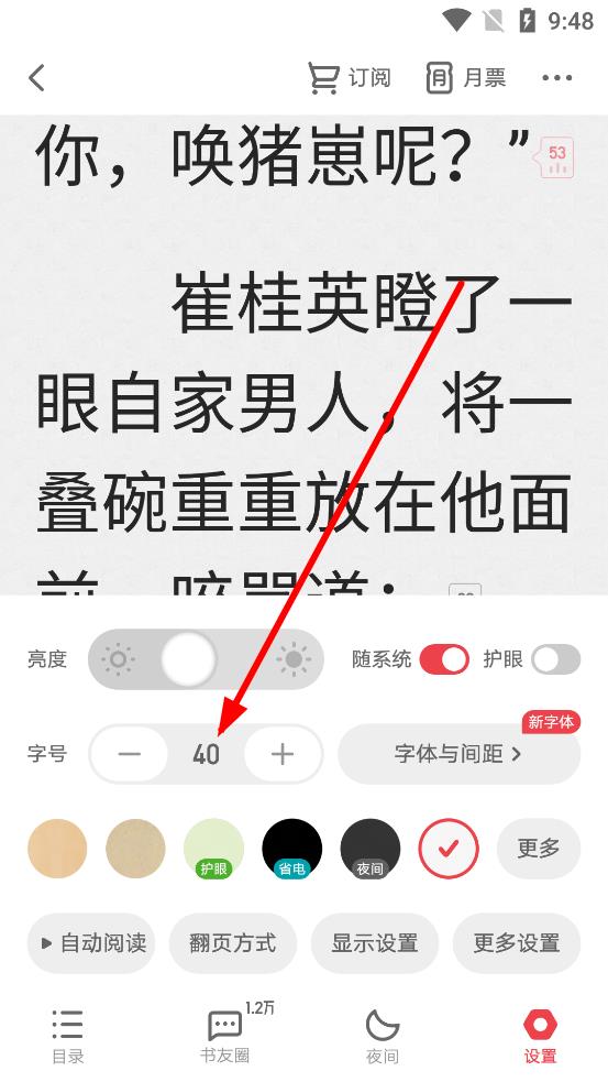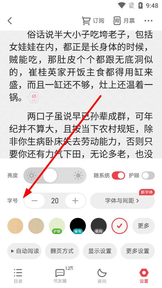3、點(diǎn)擊+按鈕,字號(hào)數(shù)值會(huì)增大,字體也就隨之變大,調(diào)整到合適的字號(hào)后,即可按調(diào)整后的字體大小進(jìn)行閱讀。