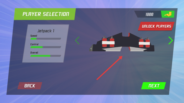 1、選擇裝備參賽:進(jìn)入賽場前挑選合適的滑翔機(jī)與噴氣裝置,根據(jù)賽道特性搭配裝備,確保在速度與操控上達(dá)到平衡,為競速比賽做好充分準(zhǔn)備。