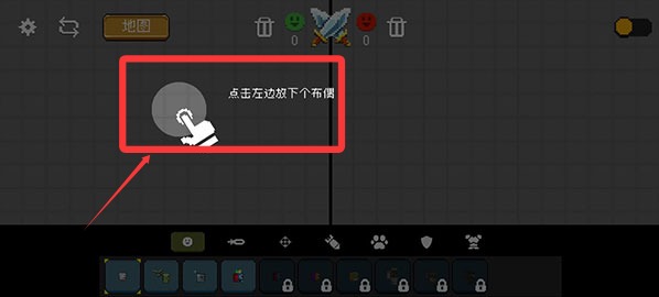 1、進(jìn)入游戲后首先點(diǎn)擊左邊屏幕放下一個(gè)布偶。