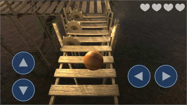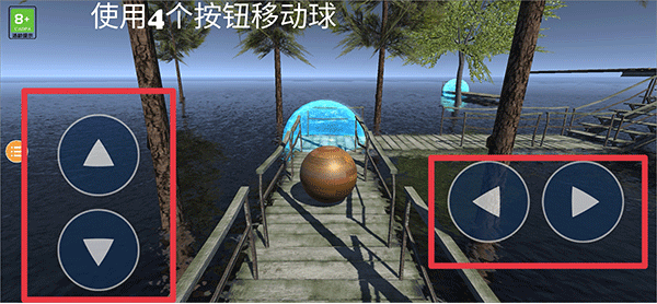 2、開(kāi)始游戲后使用屏幕中上下,左右四個(gè)按鈕來(lái)移動(dòng)球。