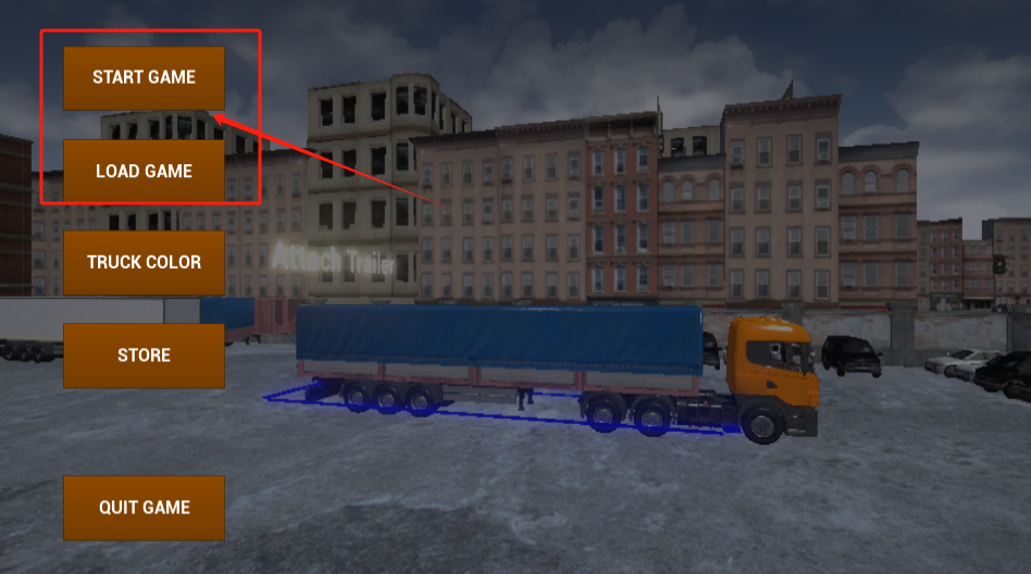 1、點(diǎn)開始游戲按鈕進(jìn)入,選卡車顏色或去商店買配件,不想玩就退出。