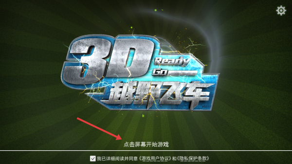 1、勾選《游戲用戶協(xié)議》和《隱私保護(hù)條款》,點(diǎn)擊屏幕,進(jìn)入《3D越野飛車》,開啟刺激賽車之旅。