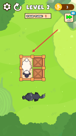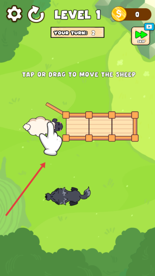 1、按提示【TAP OR DRAG TO MOVE THE SHEEP】,點(diǎn)擊或拖動綿羊,讓其避開狼,移動到安全區(qū)域。