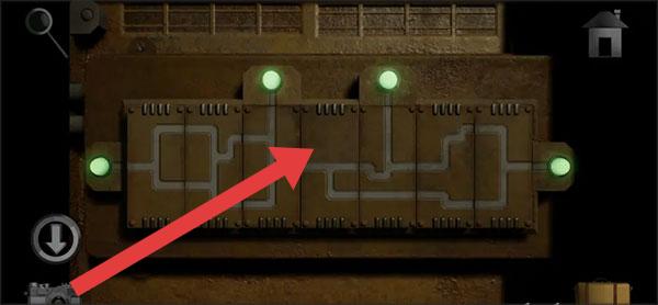 1、電路解謎界面,按箭頭指向路徑,連通電路(綠色光點(diǎn)),解開(kāi)機(jī)關(guān),推進(jìn)游戲進(jìn)程。