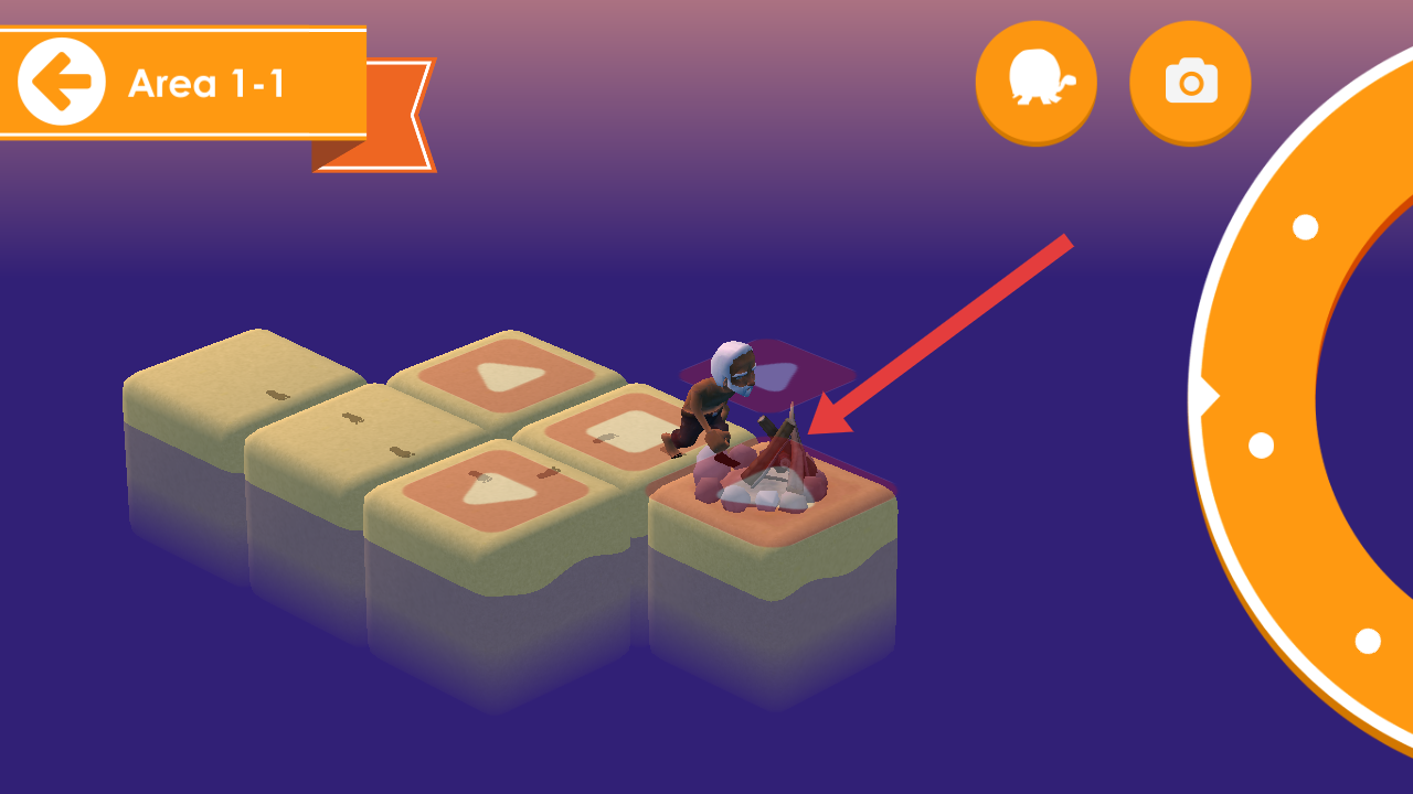 2、在【Area1-1】的關(guān)卡,需要操控角色與地面的篝火互動(dòng),觸發(fā)場(chǎng)景事件,推進(jìn)關(guān)卡進(jìn)程。