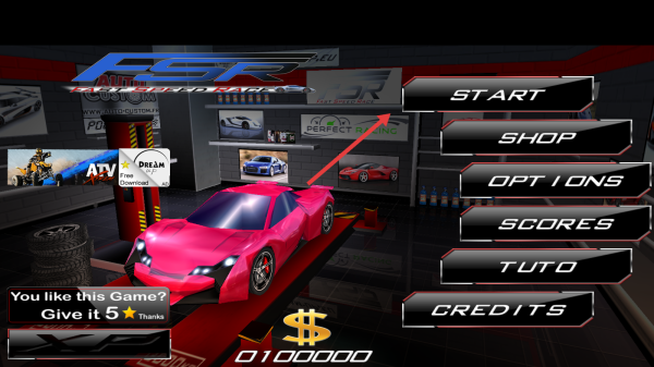 1、點(diǎn)擊【START】進(jìn)入模式選擇,可看到車庫(kù)內(nèi)粉色賽車,開啟游戲流程,準(zhǔn)備體驗(yàn)賽車玩法。