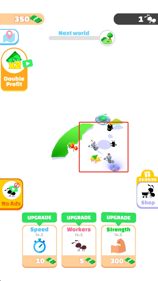 1、下載安裝完成之后進(jìn)入游戲,這里我們需要點(diǎn)擊屏幕下方的按鈕派遣螞蟻,然后即可開始游玩。