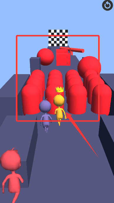 2、快速反應(yīng)避開移動障礙物,通過左右變道超越其他顏色參賽選手。