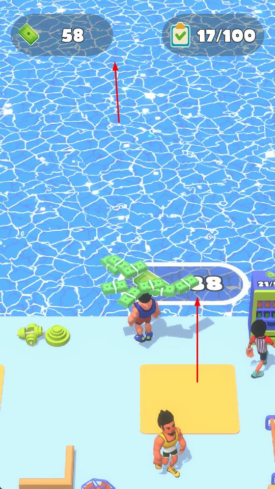 3、“資源管理”,積累金幣(10→58),用于健身房升級、解鎖新設施,擴大經(jīng)營規(guī)模。