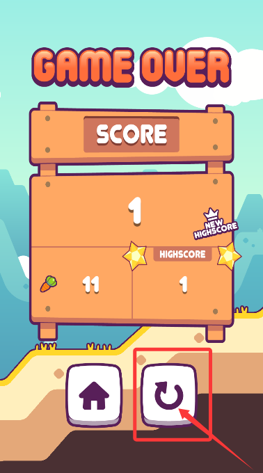 4、挑戰(zhàn)失敗時(shí),可點(diǎn)擊重試選項(xiàng)立即重置關(guān)卡,不斷突破最佳跳躍記錄。