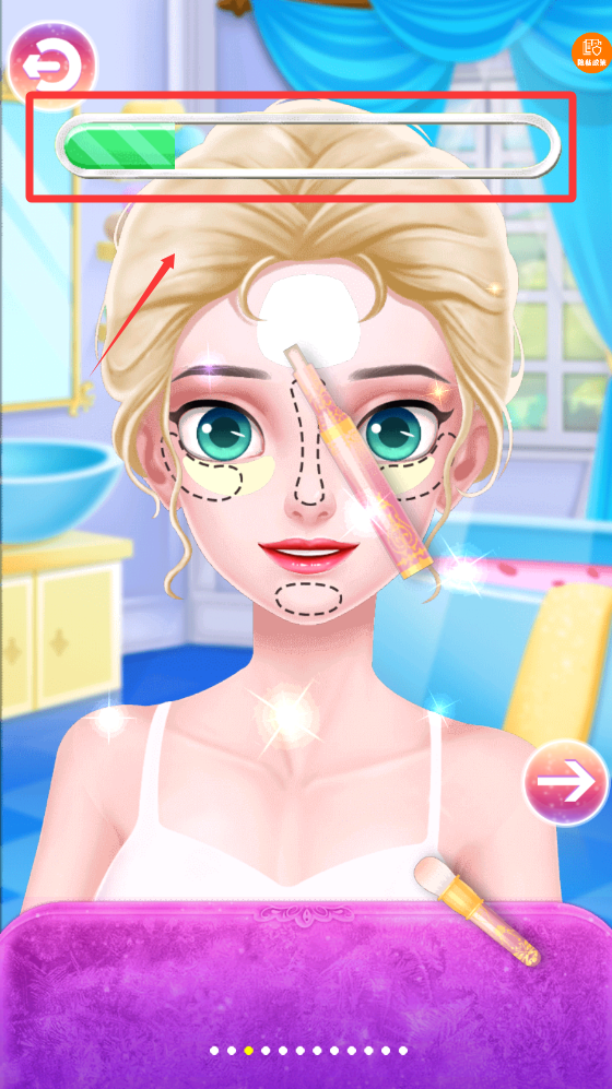 3、上面顯示有進(jìn)度條哦,綠色的進(jìn)度條加載滿了就完成妝容。
