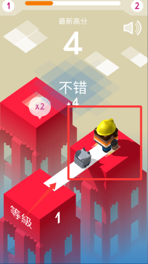 2、持續(xù)搭木板前進(jìn)以獲得更高分?jǐn)?shù),每成功搭建一塊木板都會(huì)增加你的成績(jī)。
