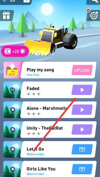 3、在音樂(lè)播放頁(yè),選擇“Faded”等曲目,點(diǎn)擊播放按鈕,駕駛賽車時(shí)可同步聽音樂(lè),提升游戲體驗(yàn),還能上傳自定義歌曲。