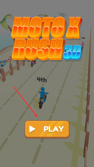 1、點擊【PLAY】,進(jìn)入《MOTO X RUSH3D》,操控藍(lán)色摩托,開啟賽道競速。
