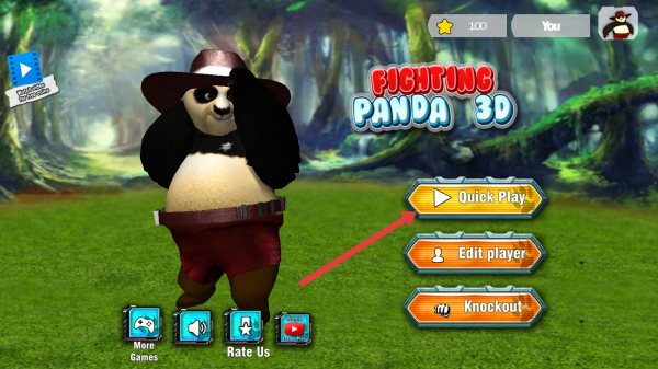 2、主界面點擊【Quick-Play】,快速開啟格斗對戰(zhàn),也可通過【Edit-player】自定義角色、【Knockout】進(jìn)入淘汰賽模式。