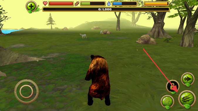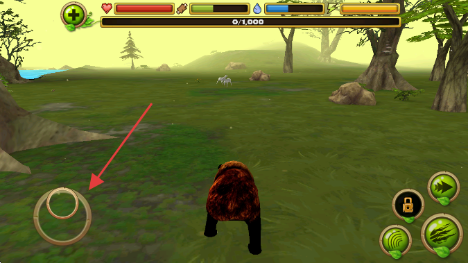 2、滑動左側(cè)虛擬搖桿,操控棕熊在森林移動。