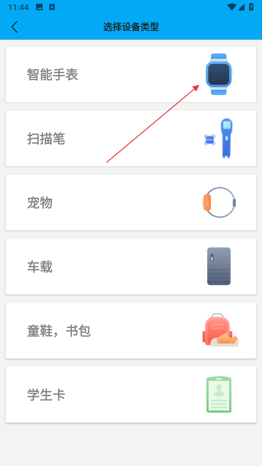 2、在選擇設(shè)備類型頁面,找到智能手表選項(xiàng)并點(diǎn)擊,進(jìn)入添加設(shè)備的詳情頁面。