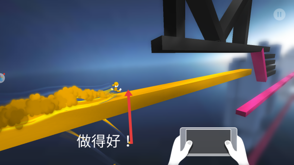 3、成功通過(guò)跑道挑戰(zhàn),收到【做得好!】反饋后,繼續(xù)保持操作節(jié)奏,應(yīng)對(duì)后續(xù)更復(fù)雜跑道與障礙。