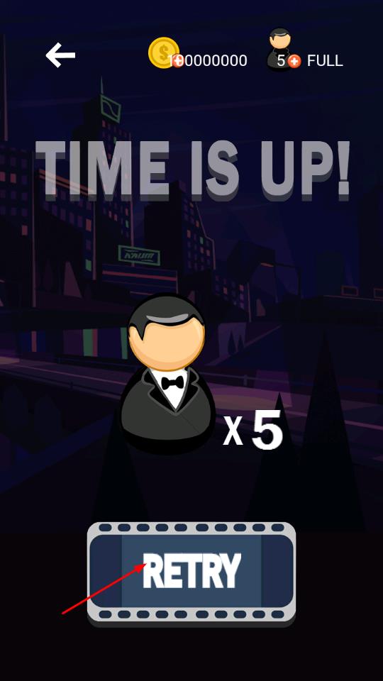 3、若時間到未完成,點擊“RETRY”重試關(guān)卡,積累經(jīng)驗提升找差異效率,推進游戲。