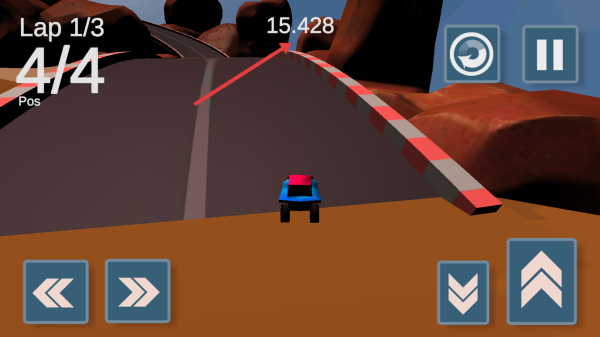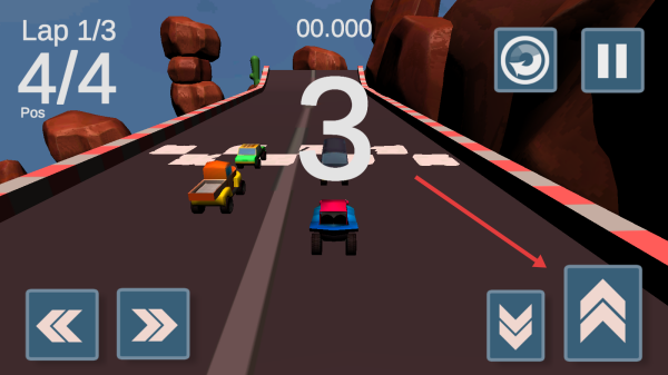 2、賽道起點,關(guān)注倒計時,比賽開始后,用右側(cè)加速鍵提速,左側(cè)方向鍵控方向。