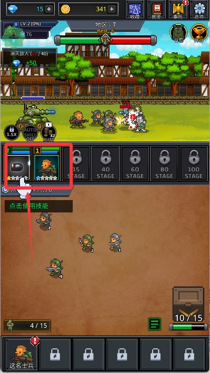 3、點(diǎn)擊上場(chǎng)士兵的頭像可以使用技能。
