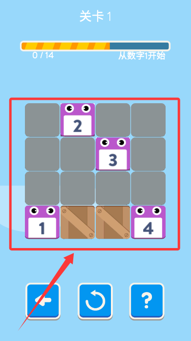 3、按照提示從基準(zhǔn)數(shù)字出發(fā),通過(guò)點(diǎn)擊升序的數(shù)字即可完成消除。