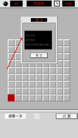 2、依照提示點擊方塊,翻開無雷區(qū)域遇疑似炸彈長按或?qū)僮?,標記避開帶花色的危險方塊。