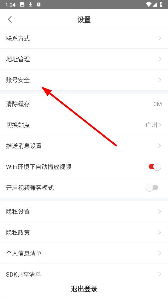 2、進入設(shè)置界面后,找到并點擊賬號安全選項,進入賬號安全相關(guān)設(shè)置頁面。