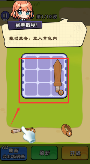 1、游戲開始后先了解背包合成規(guī)則,收集關(guān)卡中的武器裝備進(jìn)行合并,提升裝備等級才能增強(qiáng)戰(zhàn)斗實(shí)力。