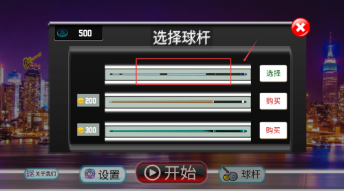 1、裝備界面提供10余款專業(yè)球桿選擇,每支球桿擁有獨特的材質(zhì)參數(shù)與擊球特性。