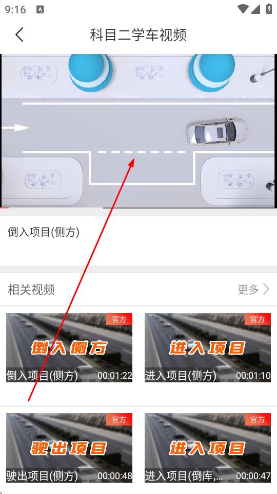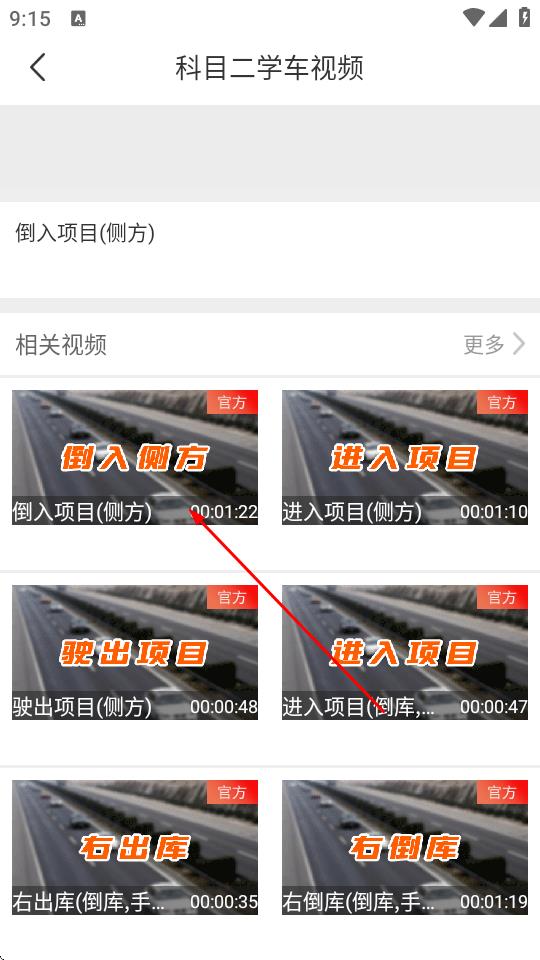 3、在科目二學(xué)習(xí)界面的考試項目詳解板塊下,選擇想要觀看的視頻教程,如點擊倒入項目。
