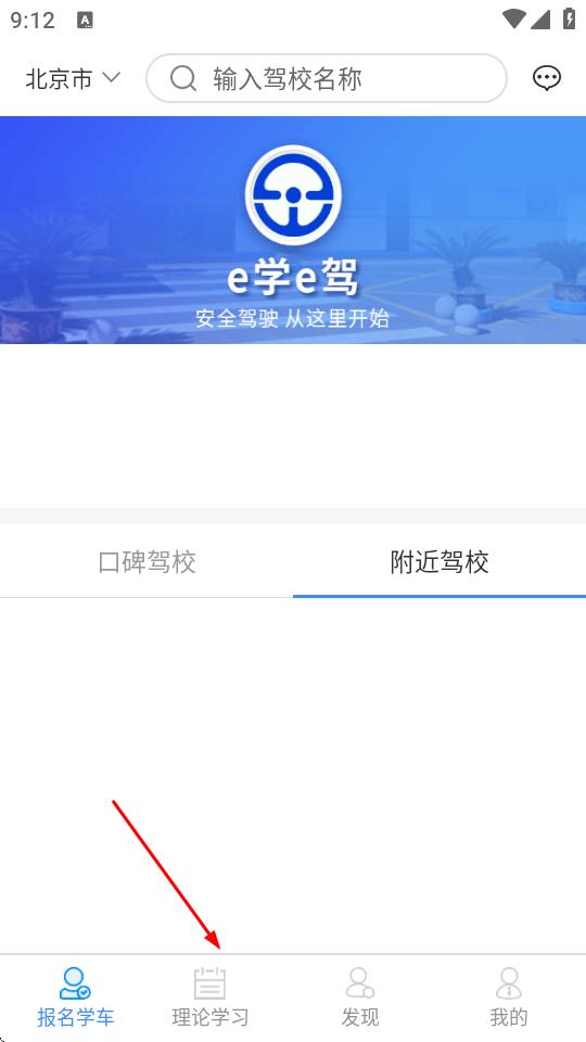 1、打開e學(xué)e駕APP,進入主界面,點擊底部導(dǎo)航欄中的理論學(xué)習(xí)選項。