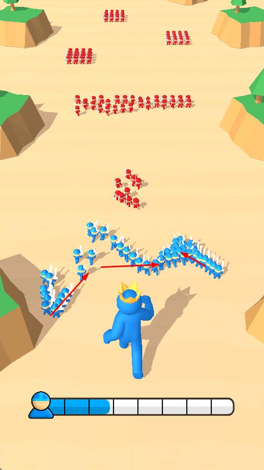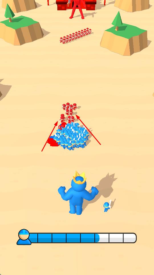 2、在移動過程中,遇到紅色小人隊伍時,指揮己方藍(lán)色小人隊伍與其戰(zhàn)斗,通過數(shù)量優(yōu)勢擊敗紅色小人,擴大己方勢力范圍。