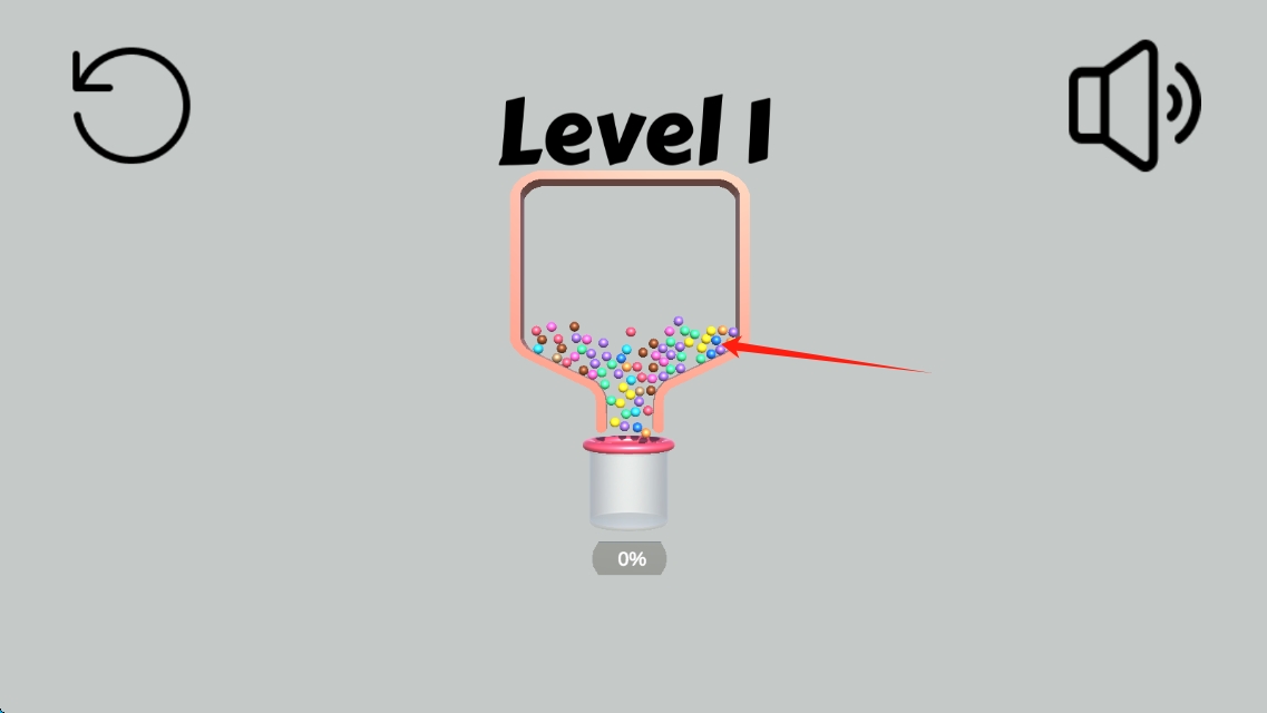 2、彩珠下落時(shí),確保軌道無(wú)阻擋,持續(xù)點(diǎn)擊或按住,控制彩珠順暢流入容器,滑動(dòng)拉開(kāi)桿子。