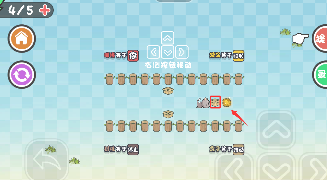 1、基礎(chǔ)操作只需滑動(dòng)控制貓咪移動(dòng),但要注意箱子只能推不能拉,走錯(cuò)關(guān)鍵一步可能導(dǎo)致關(guān)卡重置。