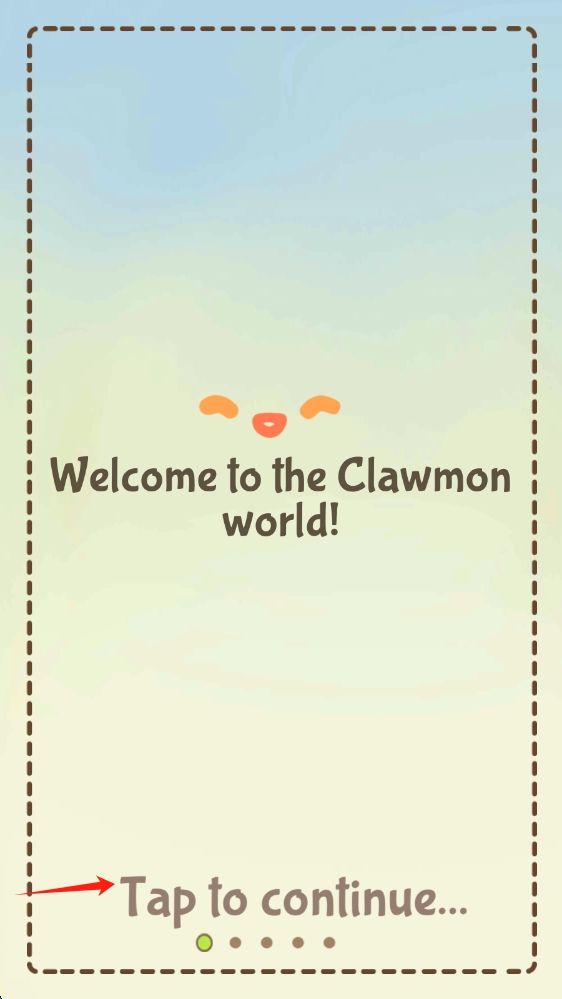 1、進入Clawmon世界,點擊Tap to continue,開啟萌寵抓取之旅,探索奇妙玩法,點擊繼續(xù)。
