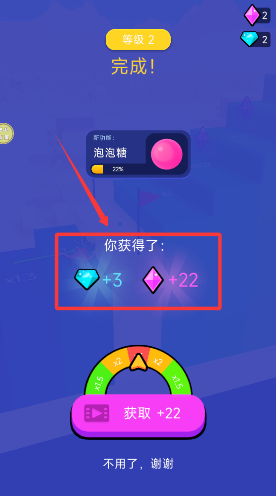 4、通關(guān)后有藍(lán)色鉆石還有粉色鉆石到獎(jiǎng)勵(lì)。