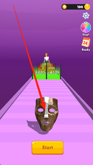 2、賽道出現(xiàn)連續(xù)陷阱和較高障礙,主人公需通過(guò)跳躍、滑行等動(dòng)作避開(kāi),堅(jiān)持前進(jìn)以靠近終點(diǎn),爭(zhēng)取解鎖新面具。