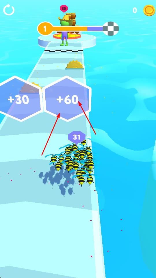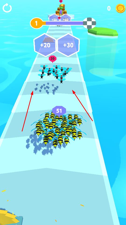 2、操控蜜蜂軍團向帶有+20+30等標識的區(qū)域移動,增加蜜蜂數(shù)量,為后續(xù)戰(zhàn)斗儲備力量。