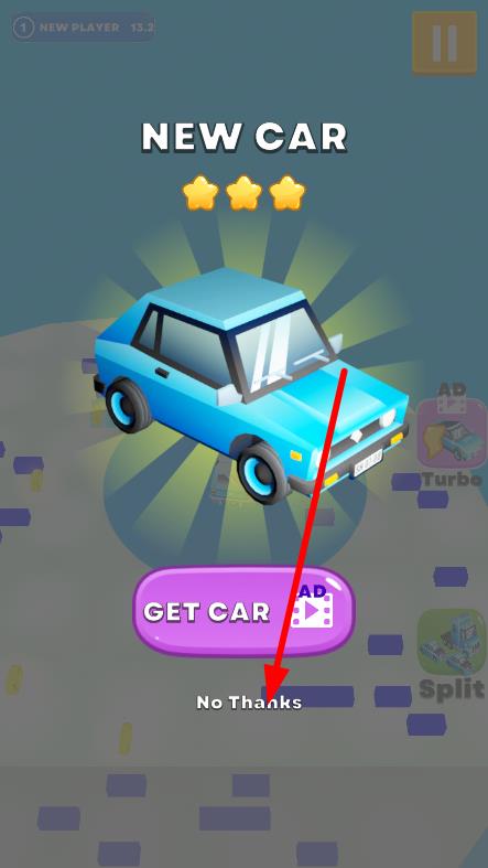 3、當(dāng)滿足一定條件解鎖新汽車后,若不想獲取新汽車,點(diǎn)擊下方“No Thanks”按鈕,繼續(xù)專注當(dāng)前車輛的競(jìng)技挑戰(zhàn)。