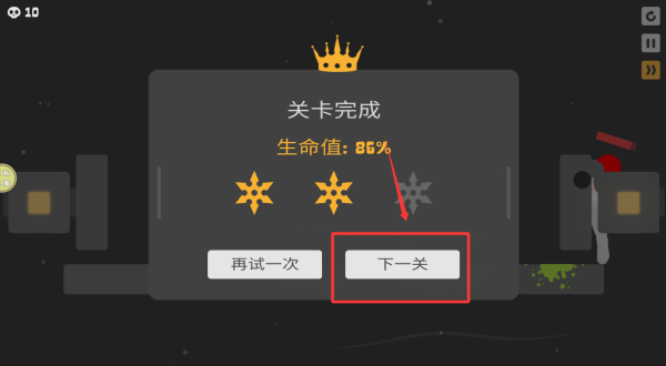 4、通關(guān)就按一下下一關(guān)按鈕繼續(xù)挑戰(zhàn)。