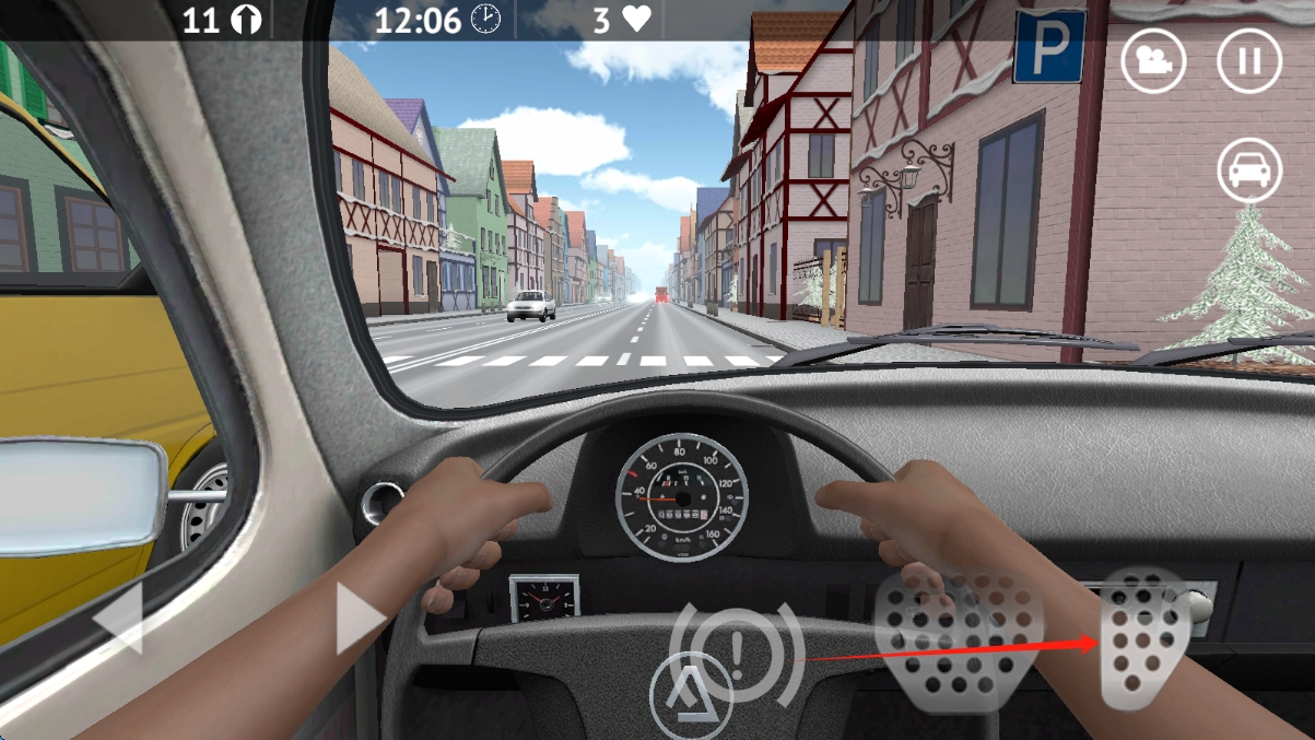 2、行駛時,用右側油門加速,左側方向鍵控轉向,注意紅綠燈、限速,避讓行人和車輛,點擊加速。
