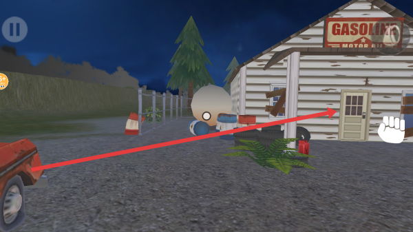 1、游戲初始場景中有標有GASOLINE的建筑,周圍油桶、輪胎等元素都可以進行探索,留意這些場景元素。