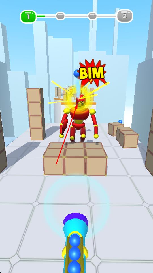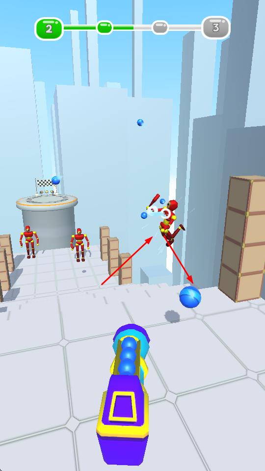2、在射擊過程中,留意周圍出現(xiàn)的其他紅色機器人,靈活調整射擊角度和目標,逐個擊敗。