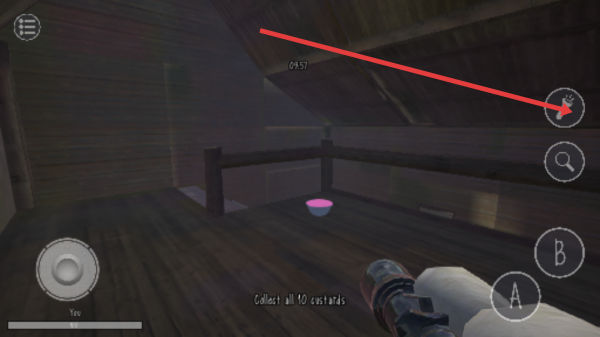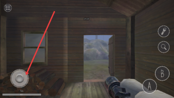 1、游戲初始用戶會(huì)處于木屋場(chǎng)景,可利用左側(cè)搖桿移動(dòng)操作角色前進(jìn)探索,同時(shí)留意右側(cè)手電筒放大鏡等功能按鈕。