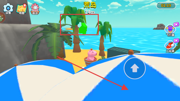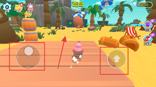 1、進(jìn)入游戲后,在游戲界面左側(cè)有方向控制按鈕,右側(cè)有向上箭頭按鈕,利用這些按鈕操控角色在場(chǎng)景中移動(dòng),探索周圍環(huán)境。