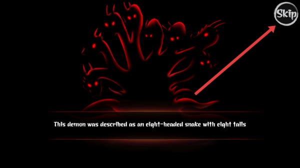 2、遇到demon相關劇情畫面,點擊右上角Skip按鈕,跳過劇情介紹,快速進入實際gameplay。