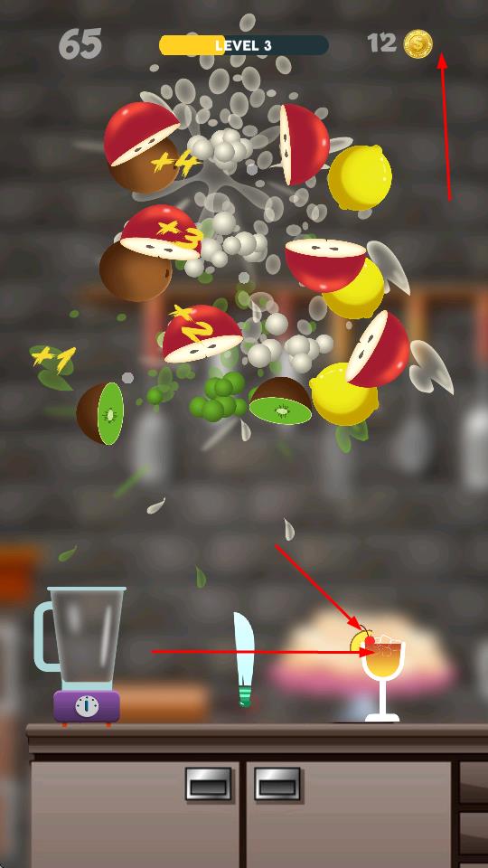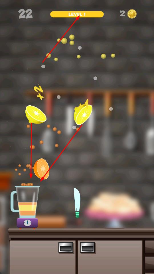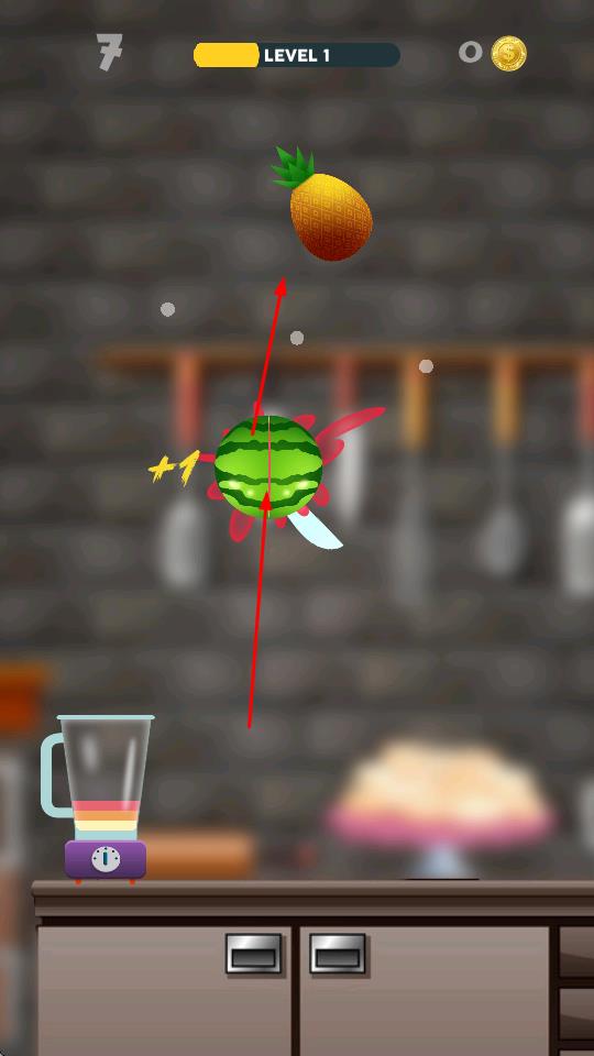 2、用手指滑動(dòng)屏幕模擬切割動(dòng)作,精準(zhǔn)切割不同水果,如西瓜、橙子等,同時(shí)留意水果的掉落方向和位置,為收集果汁奠定基礎(chǔ)。