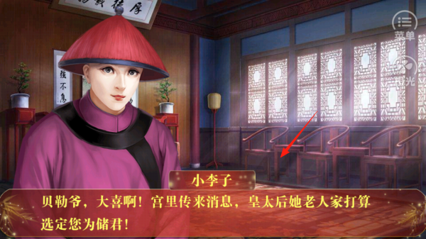 1、進(jìn)入皇帝之大清王朝,與角色小李子對(duì)話,獲取劇情信息,點(diǎn)擊場(chǎng)景內(nèi)互動(dòng)區(qū)域,推進(jìn)故事發(fā)展,了解成為儲(chǔ)君后的情節(jié),體驗(yàn)宮廷劇情互動(dòng)玩法。